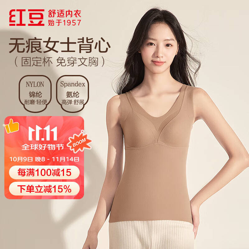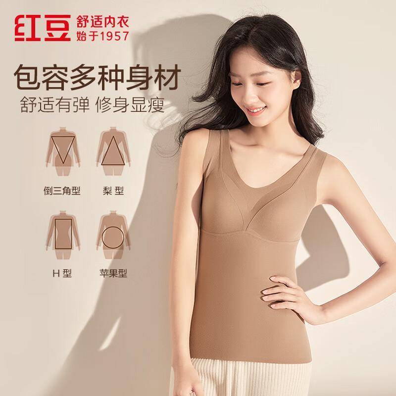 红豆【商场同款】红豆绒女士背心无痕弹力保暖带胸垫打底背心