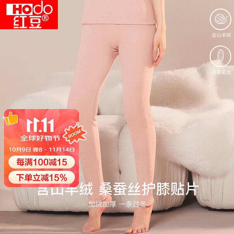 红豆保暖裤女加绒加厚抗静电保暖内衣女士厚款打底秋裤 浅粉
