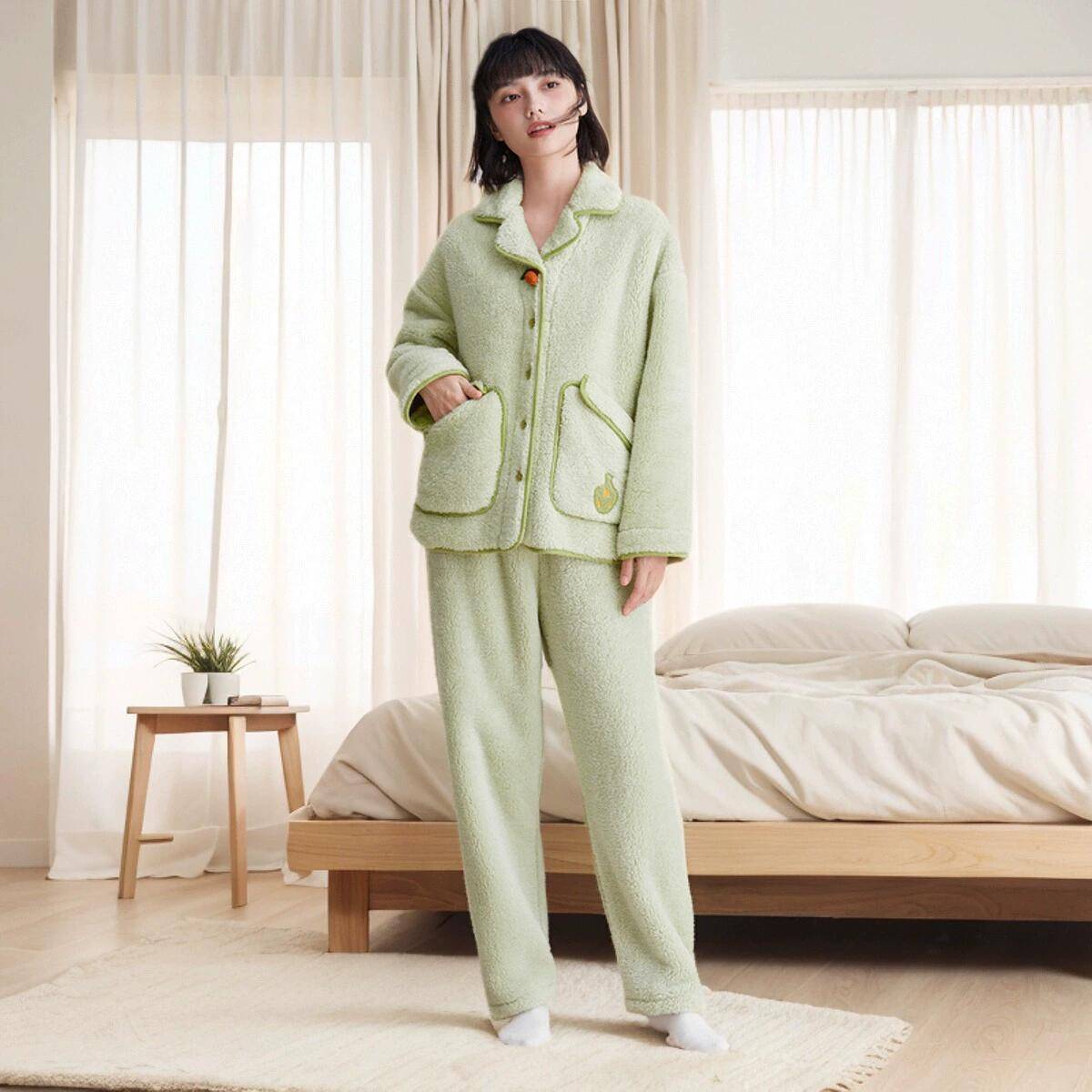 红豆保暖珊瑚绒睡衣女秋冬款情侣家居服男季抑菌男可外穿加绒加厚